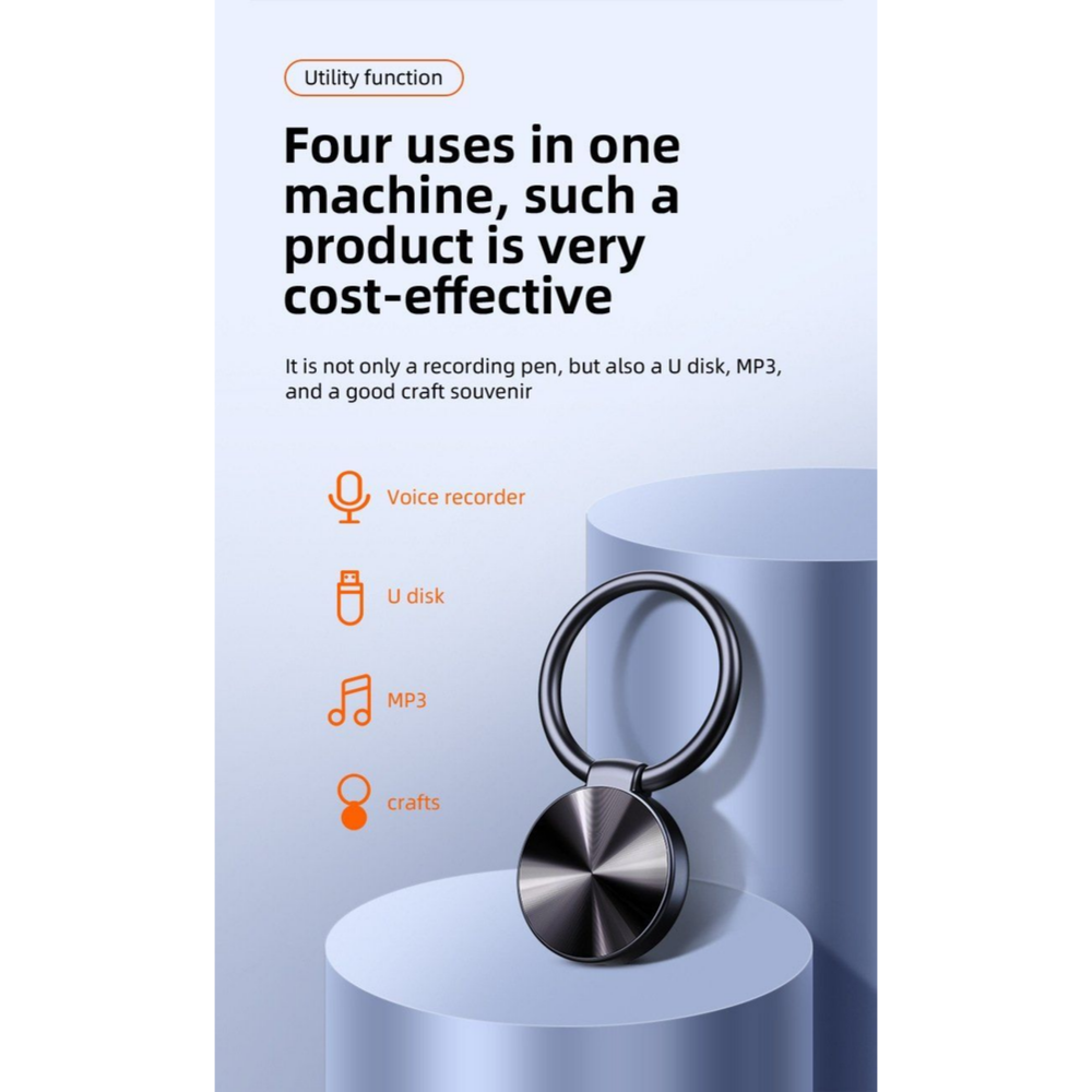 Powerful internal battery supports up to 50 hours of continuous recording or weeks of standby time. Rechargeable via USB.